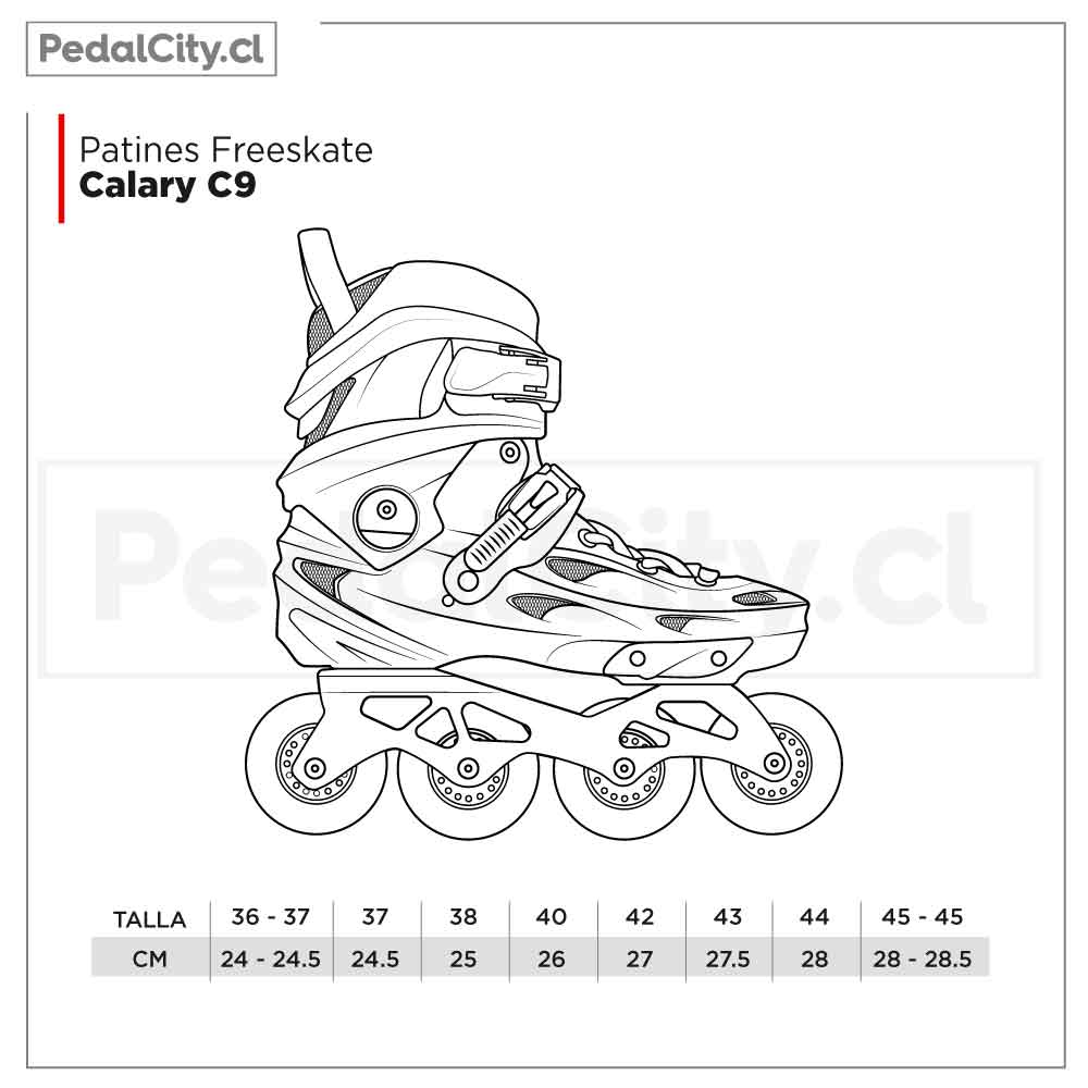 Descubre los Patines en línea Freeskate Calary C9, diseñados para patinaje freestyle, slalom y figuras sobre conos. Su configuración tipo rockering con ruedas pequeñas en los extremos (76 mm) permite una maniobrabilidad superior y un deslizamiento ágil. Ideales para patinadores principiantes e intermedios que buscan rendimiento profesional a un precio accesible.