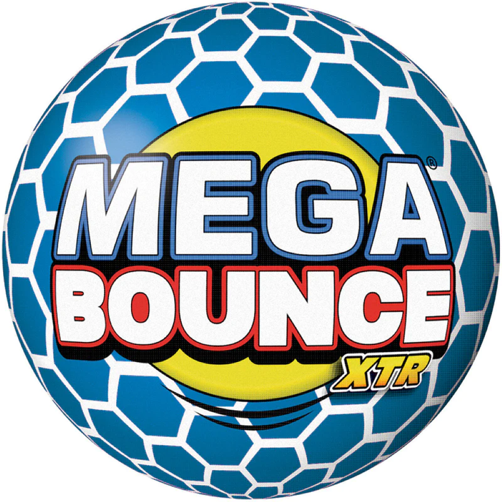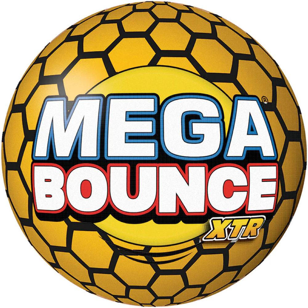 Nuestro equipo de científicos trabajó día y noche experimentando con todo tipo de materiales locos para crear la pelota con más rebote del mundo, ¡la Mega Bounce XTR! ¡Golpéala contra una superficie dura y rebotará el 85% de su altura original! ¡Una pelota de baloncesto apenas alcanza un mediocre 56%! ¡Lánzala con fuerza y observa cómo se eleva mucho más alto que un edificio de 2 pisos... es realmente MEGA!