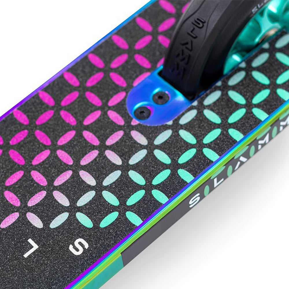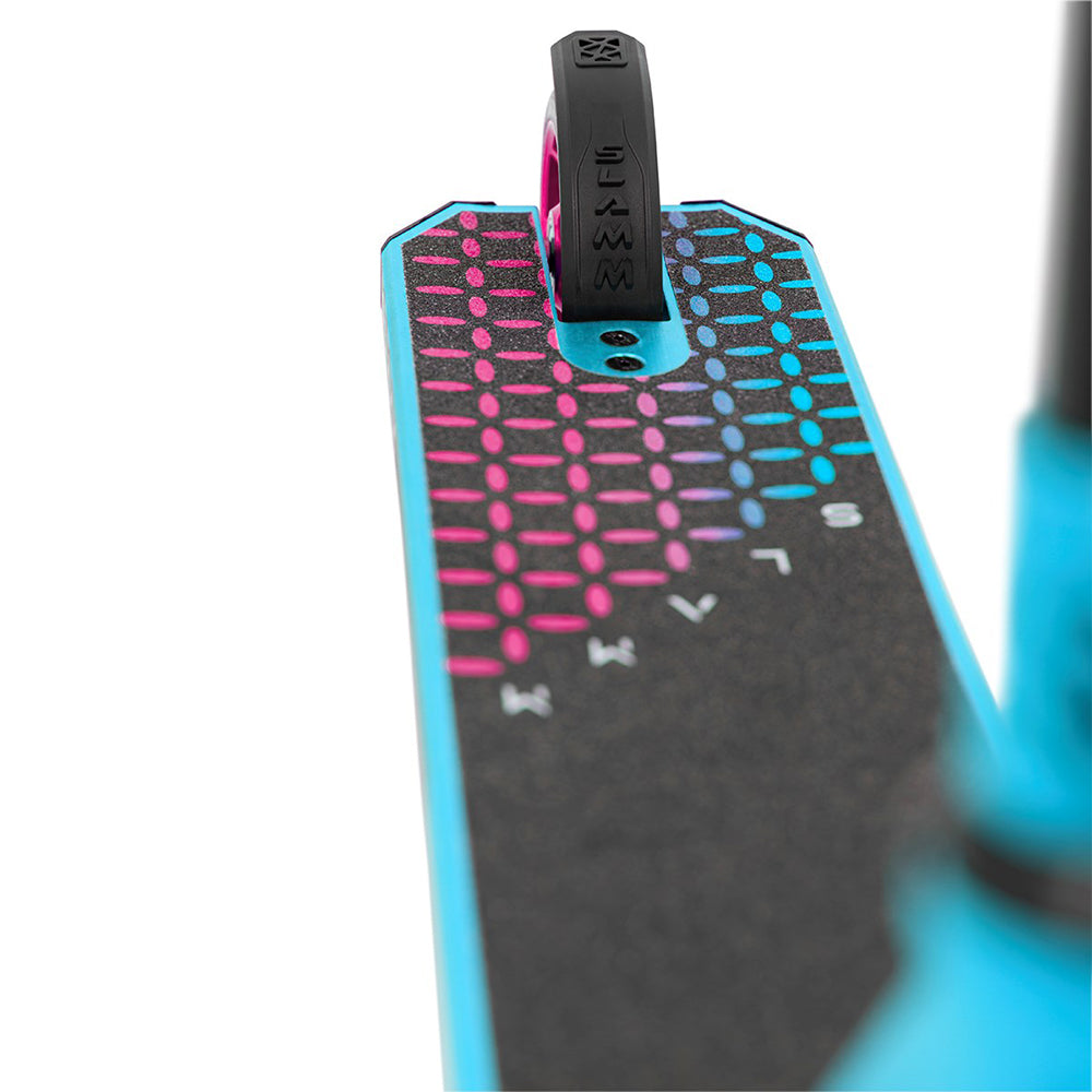 Diseñada para ofrecer un rendimiento óptimo y precisión, la Slamm Assault cuenta con ruedas de aluminio de 110mm y un deck de aleación de 4.8” que incluye un conector de cuello extruido para mayor estabilidad y control en trucos. Ideal para riders principiantes e intermedios, combina un diseño moderno con varias combinaciones de colores. Su construcción robusta favorece la agilidad y la durabilidad, permitiendo mejorar las habilidades en skateparks y calles. Con un diseño exclusivo de dos tonos en el deck, la Slamm Assault brinda confianza y seguridad sin sacrificar la diversión.