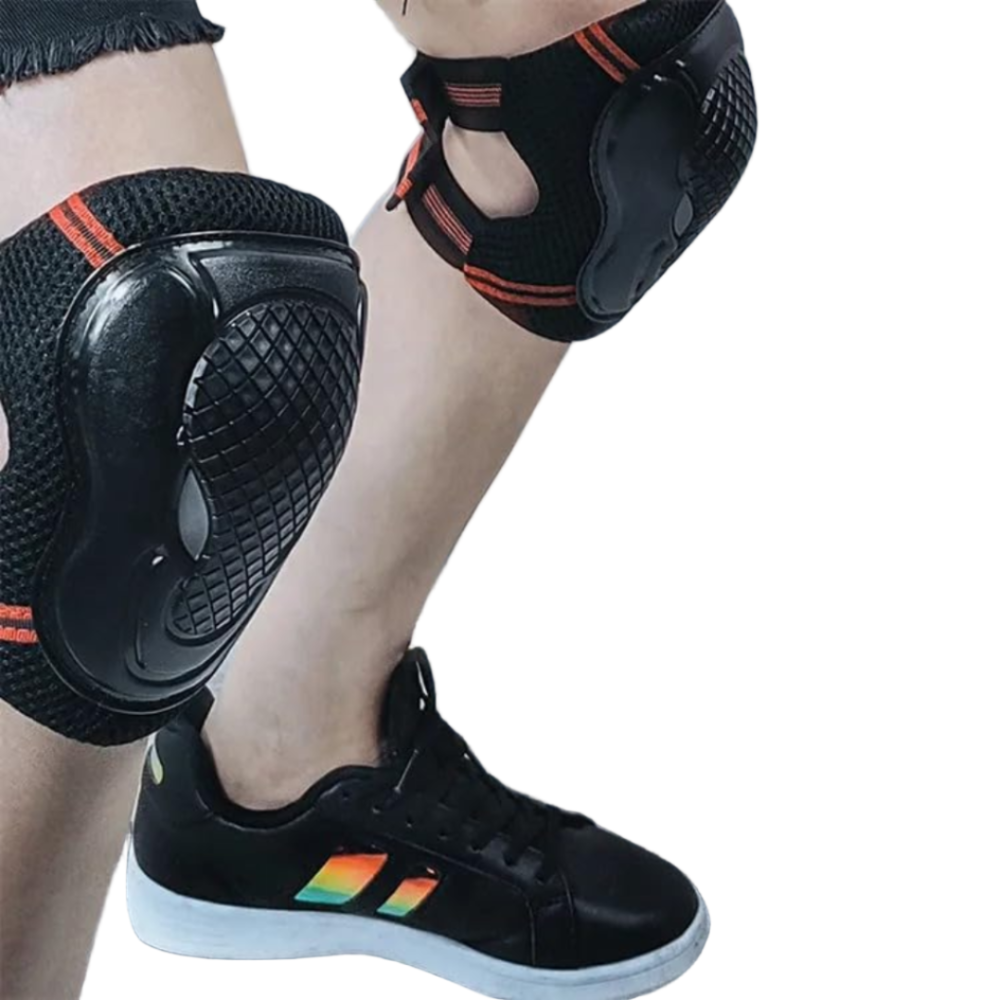 Este set de protecciones está fabricado con una carcasa de PVC anticolisión y anticaídas, ofreciendo resistencia, ligereza y durabilidad. Su diseño acolchado ayuda a absorber impactos y proteger codos, rodillas y muñecas durante la práctica deportiva.